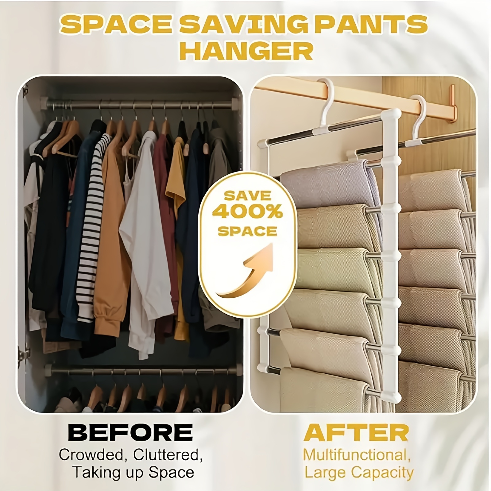 Set of 3 Collapsible Multi-Tier Trouser Hangers, Designed to Save Space, Made of Stainless Steel with a Non-Slip Feature, Ideal for Organizing Wardrobes at for home Or for Retail Displays, Perfect for Jeans, Pants, Shirts, Towels