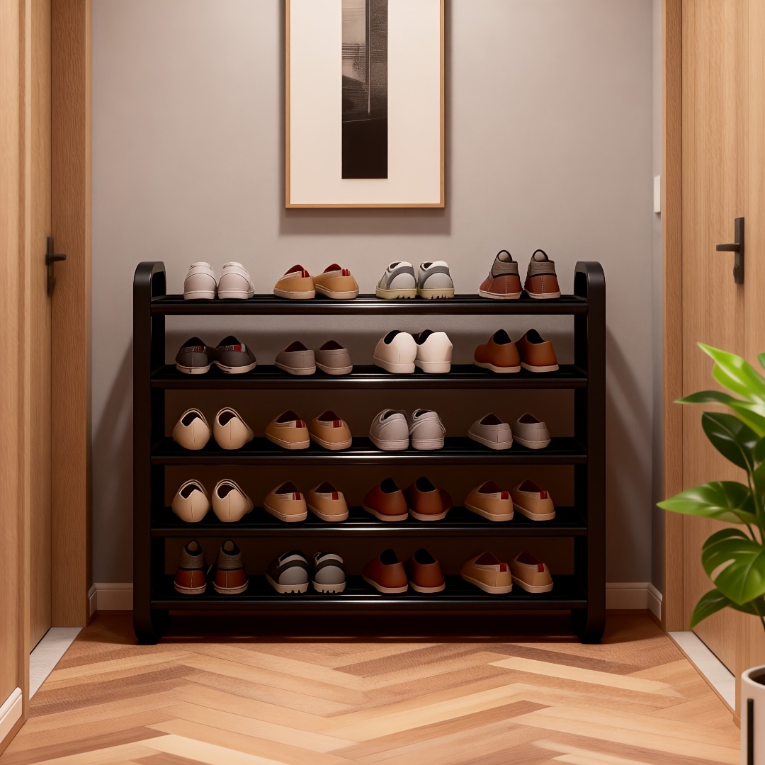 Space-Saving 5-Tier Shoe Rack, Durable, Narrow Design, Multi-Layer Craftsmanship, No Wood, Floor Mount, With Electricity-Free Use For Entryway And Dorm Storage, Living Room Compatible, Shoe Racks, Shoe Storage Organizer, Shelf.